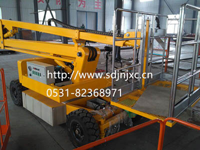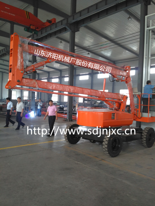 自行式折臂升降機(jī),利用柴油機(jī)為動(dòng)力,加電瓶采用電啟動(dòng),適用于野外及無(wú)電源場(chǎng)所作業(yè),自支腿、自升降、自行走,360°旋轉(zhuǎn)作業(yè)。本產(chǎn)品具有操作簡(jiǎn)單,使用方便,作業(yè)面大,特別是能夠懸伸作業(yè),跨越一定的障礙物或在一處升降,可進(jìn)行大范圍多點(diǎn)升降作業(yè)的特點(diǎn),極大地提高了工作效率。該系列高空作業(yè)平臺(tái)車(chē)廣泛用于市政、電力、路燈、公路、碼頭、廣告、園林、小區(qū)物業(yè)、廠礦企業(yè)車(chē)間等行業(yè)范圍升降作業(yè)。上升,下降,旋轉(zhuǎn)(360度)、探出等操作,易于跨越障礙到達(dá)工作位置,在不同情況下快,慢行走(前進(jìn),后退,轉(zhuǎn)方向)。