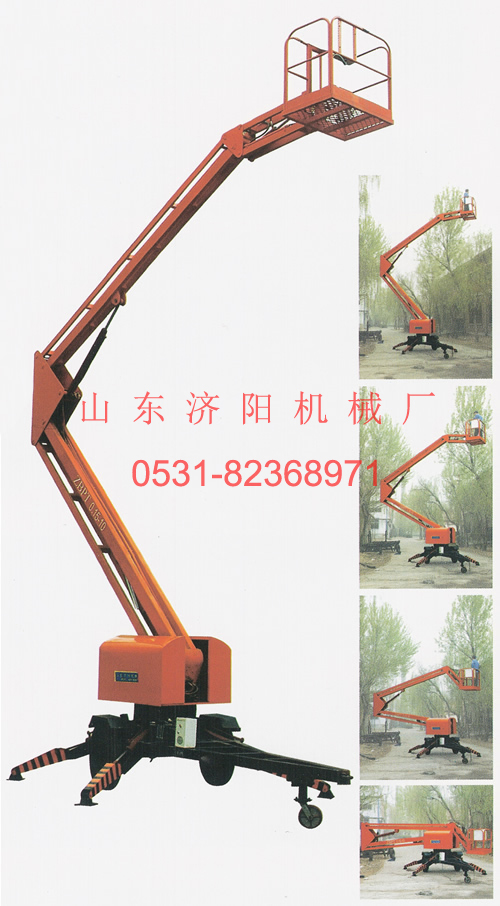 該系列升降機(jī)主要用于室外高空作業(yè)。折臂結(jié)構(gòu)緊湊,采用新型優(yōu)質(zhì)型鋼,強(qiáng)度高、重量輕、架設(shè)速度快,具有自動液壓支腿,工作臺既可升高又可水平延伸,還可旋轉(zhuǎn)。可采用交流電源啟動,易于跨越障礙物到達(dá)工作位置,是理想的登高作業(yè)設(shè)備。該系列升降機(jī)廣泛用于市政、電力、路燈、公路、碼頭、廣告、廠礦車間大范圍作業(yè)。