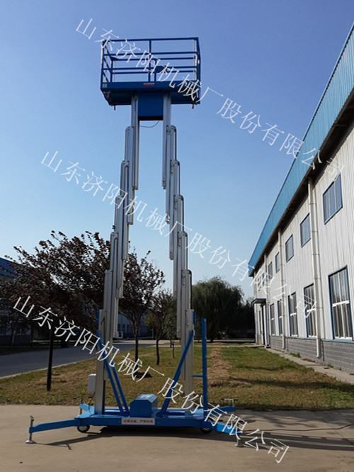 升降操作設(shè)兩套按鈕,工作臺(tái)面與臺(tái)下都可控制。平臺(tái)上升到最高位置時(shí)有極限限位。具有造型美觀、結(jié)構(gòu)緊湊、體積小、重量輕、升降平衡、安全可靠等優(yōu)點(diǎn)。該系列產(chǎn)品分為單桅柱,雙桅柱,三桅柱及四桅柱鋁合金升降平臺(tái)。